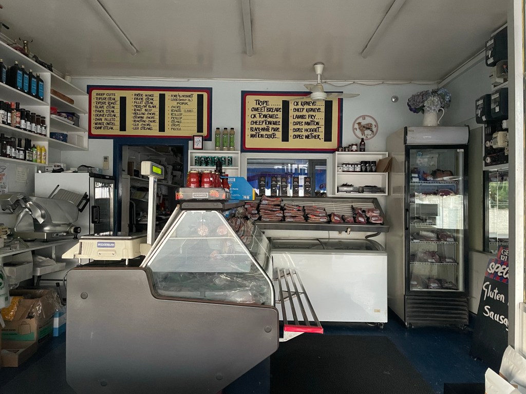 This butcher shop looked like a museum diorama, but is actually a butcher shop.