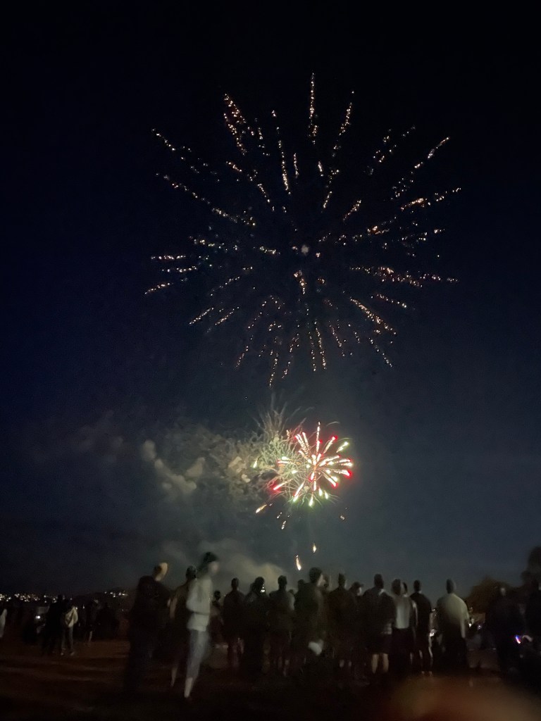 We had to park pretty far away, and the traffic getting out was pretty awful, but the actual fireworks were fine, and we had good seats on the beach.