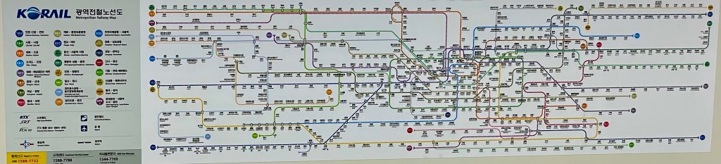 On my final day in Korea, I decided to brave the subway to go from Incheon into Seoul. As you can see, the subway system is extensive. It took three trains to get where I was going. I think I missed one chance to take an express instead of a local, but otherwise I did ok.