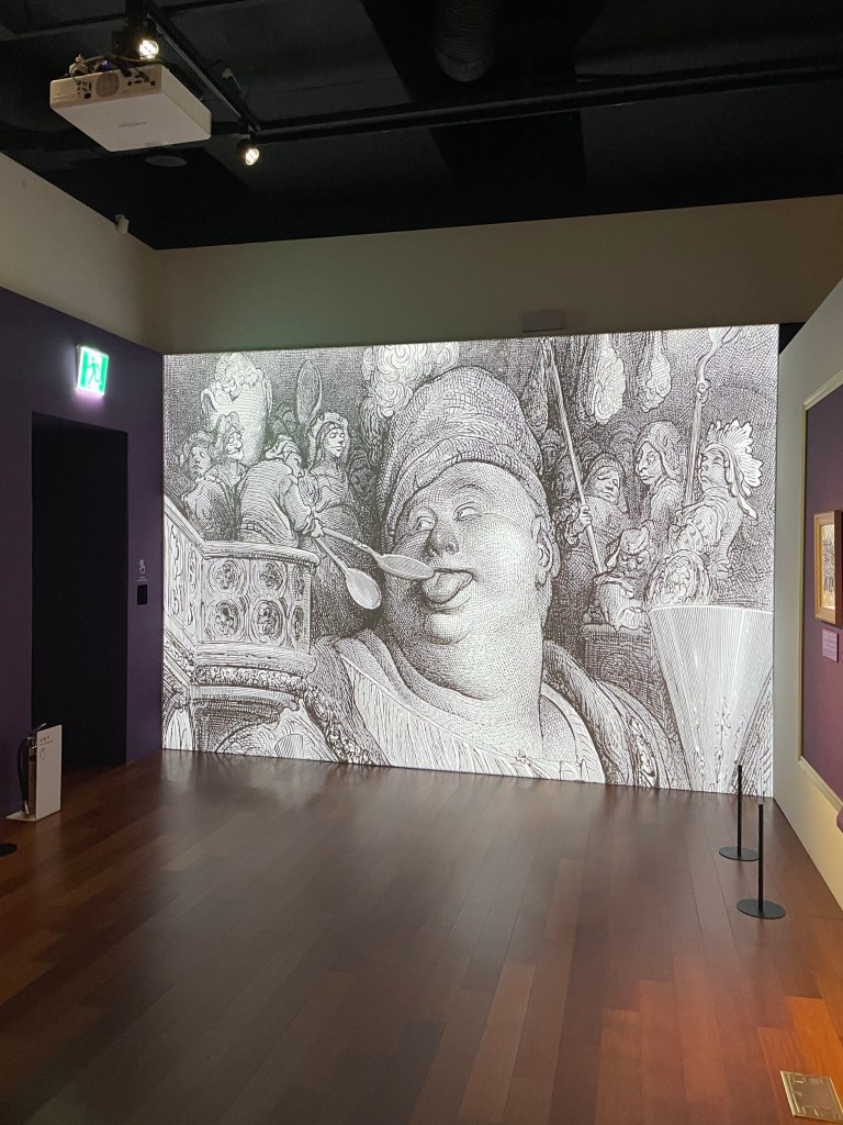 The temporary exhibit was dedicated to the life and work of Gustave Doré. I couldn’t have dredged his name out of my memory, but a lot of his illustrations were familiar to me. Puss in Boots, The Ancient Mariner, Dante’s Inferno, and so on. I don’t specifically remember reading these illustrated books… but somehow they seeped into my consciousness. The exhibit argued for the huge impact Doré had on the whole idea of illustration in books, and that certainly seems true.