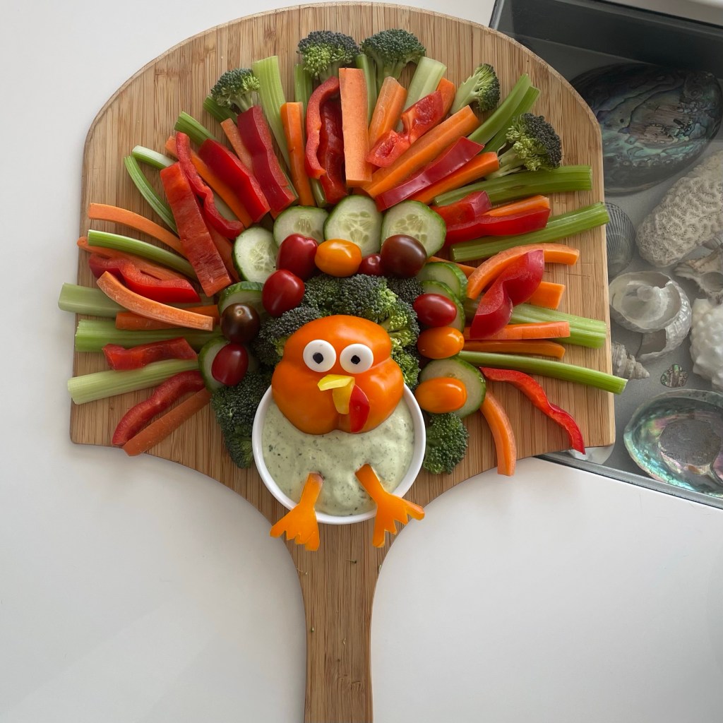We pushed two tables together, which left plenty of room for the serving platters. Often, we have served buffet style, but this gave it a more Norman Rockwell vibe.