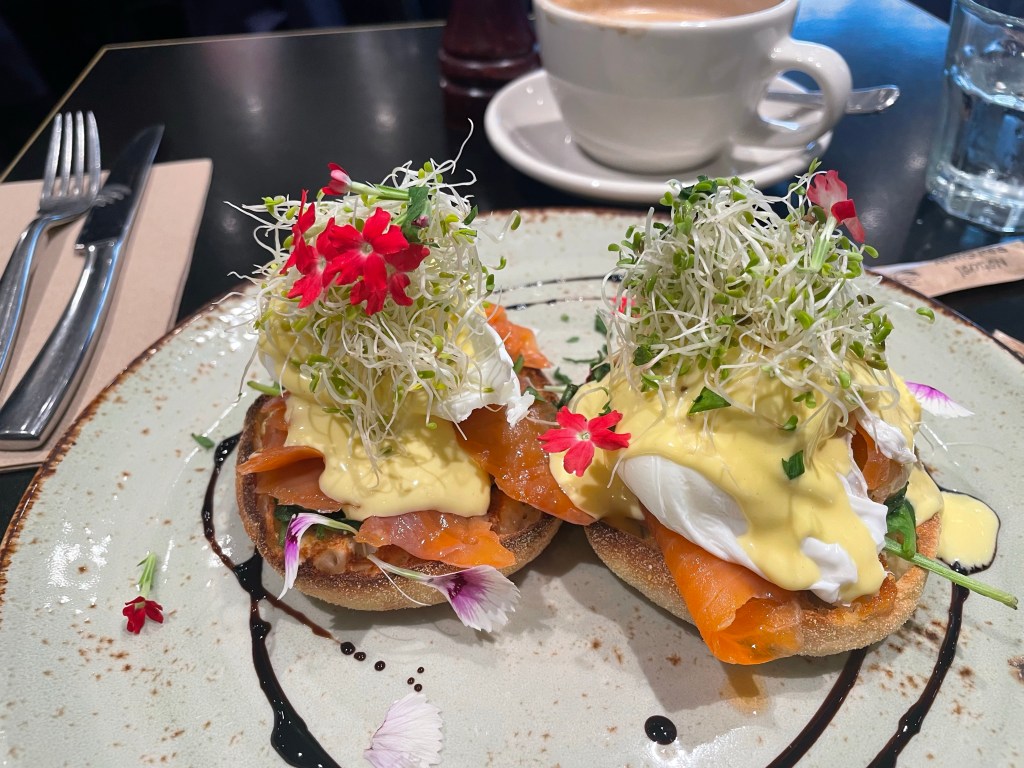 Wherever the name comes from … my salmon Benedict was pretty and delicious.
